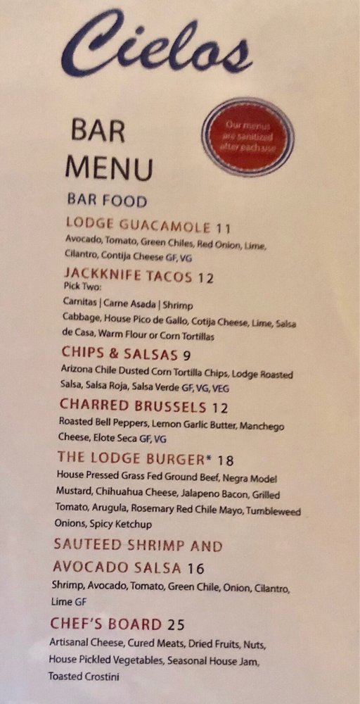 Cielos Menu